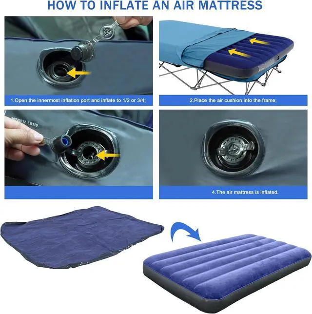 - PORTABLE DESIGN: The camping cot inflates quickly with your own pump. The portable cot can be folded and put into a carry bag, making it easy to take to your campsite and perfect for outdoor rest