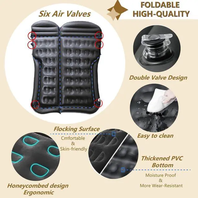 On the other hand, you can place the inflatable bed in the tent, backseat of your SUV, and even on the lawn or beach for the outdoor activitiesBest GiftYou and your family members and friends deserve the best products and services. As a gift ADIRIGO portable air mattress can be the best present that you can give to whom you loved and truly cared about to make them feel better about your thoughtfulness and companionship for the all festivals like Christmas- Design UpgradeADIRIGO SUV car inflatable mattress is designed with more bolded and thickened honeycomb air columns, which increases the elasticity and makes it more comfortable to use.