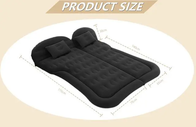 - Rapid inflationLay the mattress flat, open the exhaust valve, use our supplied inflation pump to connect to the car's power supply, while press down to ventilate, then the mattress will quickly fills with air and get ready to use. We also provide three different inflatable funnels that can be used in different positions to inflate the mattress, and the dual nozzle design allows air to enter the mattress without leaking out.