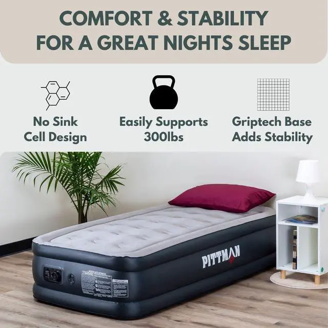 - Durability - Our heavy duty air mattress is designed to withstand camping, teenagers and pets. We designed this Twin Air bed to weather anything life can throw at it