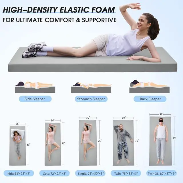 - MULTI-SIZE SELECTION: This is the single size (75x30x3) we also have other sizes: kids size (63*25*3) cot size (72x24x3), twin size (75x38x3), twin XL size (80x38x3), you can choose the right size for you according to your height and other needs, you can choose the right size according to your height and other needs.