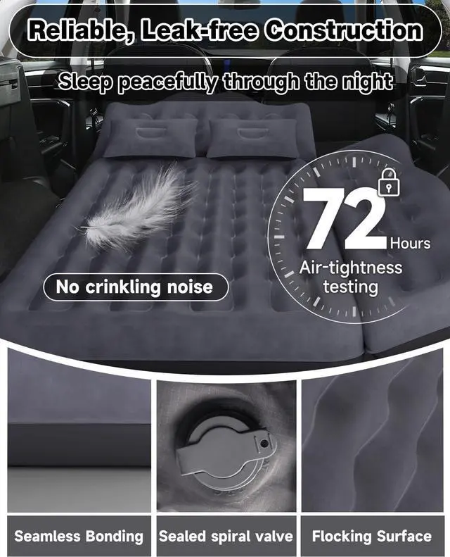 Usage Scenarios: Our air mattress has versatile applications, serving as a car air mattress, SUV air mattress, and suitable for car back seats and SUV back seats. Additionally, it can be used in guest bedrooms, hotels, tents, and camping sites. You can use it anytime, anywhere based on your needs. falseHigh-Quality