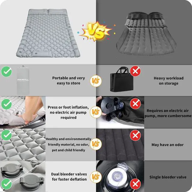 - PORTABILITY & EASY TO USE: The SUV air mattress comes with its own pillow and built-in foot pump, which makes inflation and deflation incredibly easy, no additional inflation equipment required. Weighing in at 3 pounds, it is lightweight and portable, perfect for carrying to various outdoor locations such as campgrounds, beaches or parks.