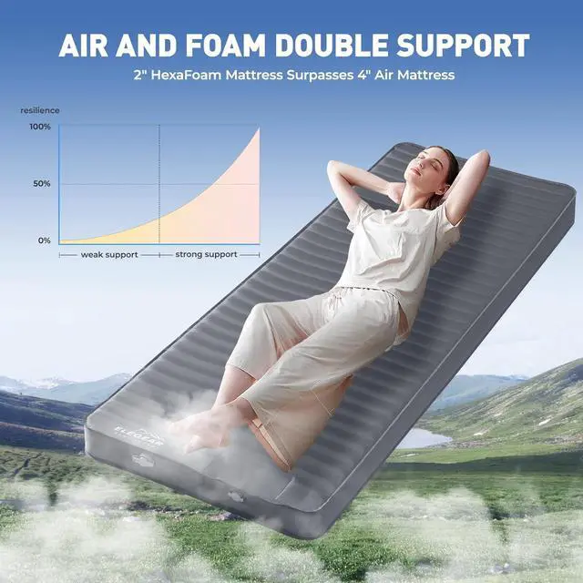 Revolutionary HexaFoam Design: Experience the ultimate comfort with our innovative HexaFoam sleeping pad. This unique design combines the best of both worldslightweight and breathable hollowed-out foam for superior support, while solving the drawbacks of traditional air mattresses and bulky foam camping pads. Say goodbye to uncomfortable nights and hello to restful sleep under the stars!