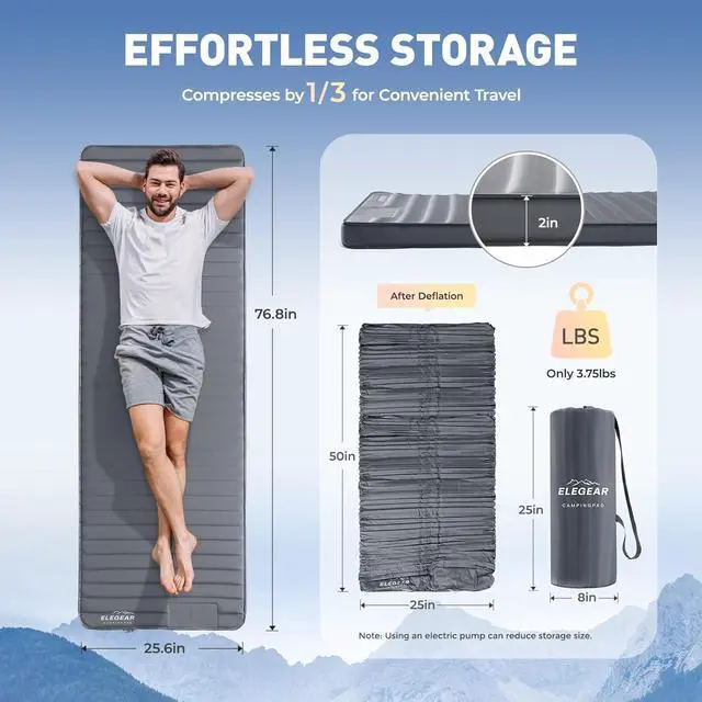 & Portable Design: Weighing 50% less than traditional memory foam camping mattress and compressing to one-third of its size, our sleeping pad is incredibly easy to carry. Slip it into your backpack without adding unnecessary weight, making it an essential gear for any outdoor enthusiast. Travel light and enjoy the freedom to roam without compromising on comfort! false-
