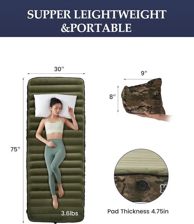 LIGHTWEIGHT & PORTABLE: Weighing only 3.6 lbs and folding down to a compact 9 x 8 x 8 inches, its easy to carry with its built-in handle, making it an excellent companion for camping, hiking, and backpacking adventures. It also doubles as a safe play mat for kids, a relaxing spot for picnics, or a comfortable guest bed at home, offering instant comfort wherever you needfalseSIMPLY