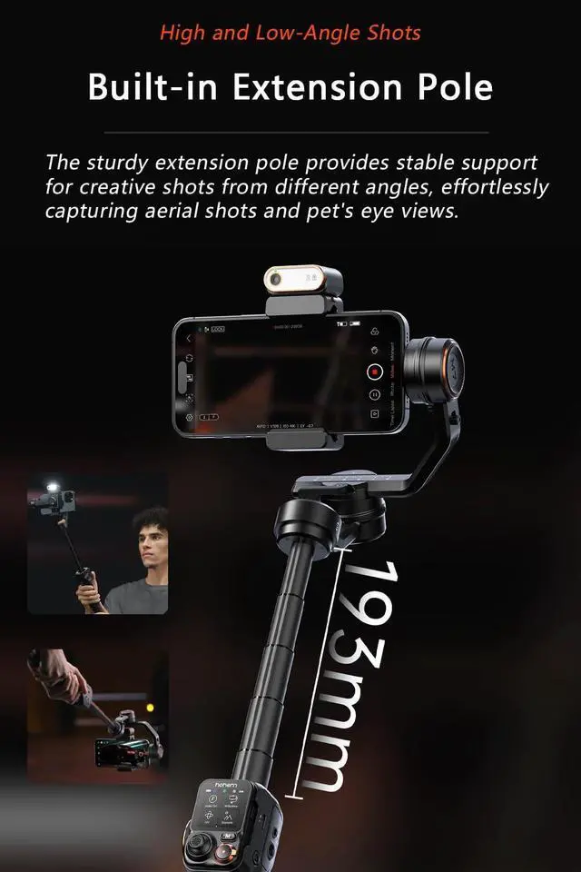 - Built-in Extension PoleHigh and Low-Angle Shots - The sturdy extension pole provides stable support for creative shots from different angles, effortlessly capturing aerial shots and pet's eye view
