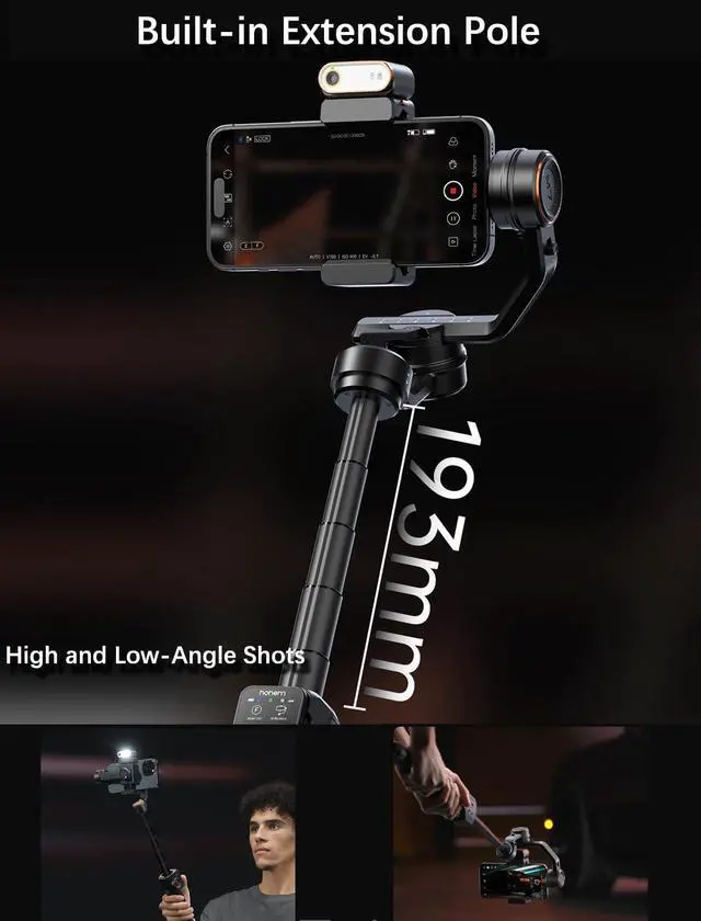 - Built-in Extension Pole: The isteady M7 gimbal is built with 7.5" extension pole, provide you stable support for creative shots from different angles, effortlessly capturing aerial shots and pet's eye views.
