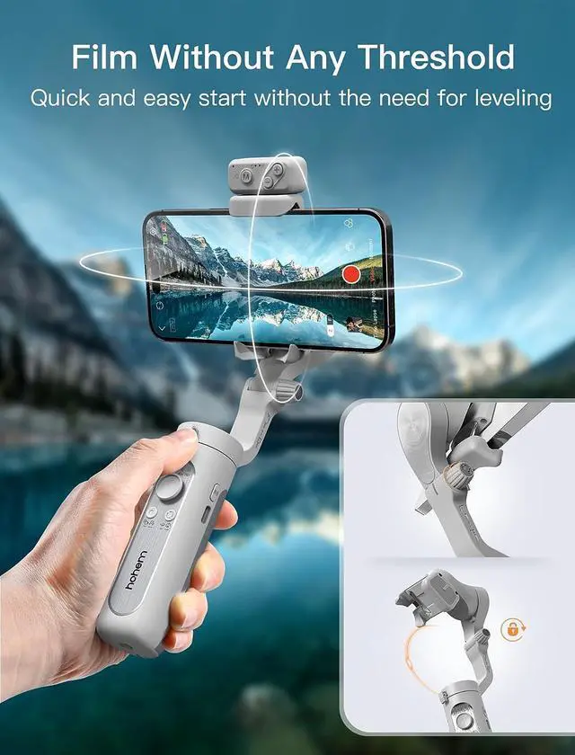 [Film Like a Pro with Hohem Joy] With the Hohem Joy app, you can effortlessly capture every moment, whether you're filming your child's soccer game or creating professional-grade content for your business. Our face and object tracking feature utilizes cutting-edge algorithms to automatically recognize and track faces, pets, and other objects with unparalleled precision and accuracy. There are also a bunch of creative templates, even entry-level users can capture professional-grade footagefalse[Quick Start, No Threshold] The XE is designed to be the first phone stabilizer for beginners, which is easy to install and use for shooting.