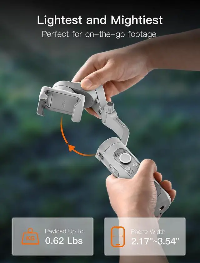 - [Lightest and Mightiest] As the lightest stabilizer on the market, the XE weighs only 0.57 lbs (259g), its foldable design makes it an excellent choice for capturing smooth footage on the go. Despite its compact size, the XE stabilizer boasts a 30% increase in motor torque, providing improved stabilization and support for a maximum payload of 0.62 lbs.