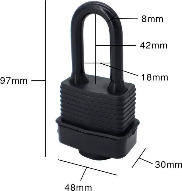 - Outdoor Waterproof Locks: Black plastic covered laminated steel body provides outdoor protection against water, moisture, dirt & grime