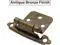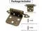 Self Closing Cabinet Hinges1/2 inch overlay cabinet hinges with premium spring will automatically close without any noise when the cabinet door hinges closure angle is less than 30°. The self-closing cabinet hinges will make your life easier. falseEasy InstallationAntique brass cabinet hinges attaching to the surface of the cabinet door don't need any mortise, each cabinet hinge comes with 5 mounting screws, making installation easy and fast. false- Package Included50 Pcs (25 Pairs) antique brass cabinet door hinges with 250 Pcs stainless steel screws, 1 Pair (2PCS) hinges in 1 individual package.