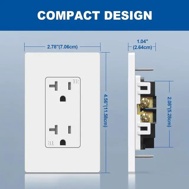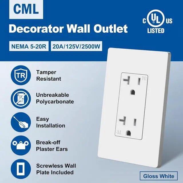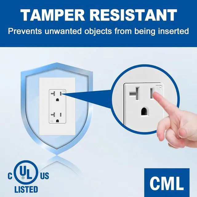Compact design fits in a standard electrical box. Screwless wall plates includedfalseUL Listed for safety. Perfect for both residential and commercial spaces, including homes, apartments, condos, hotels, restaurants etc. false- Tamper resistant outlet prevents insertion of foreign objects and protects your children from electrical injuries