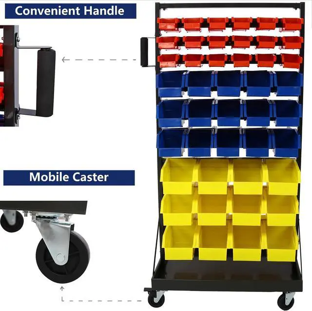 - Space-Saving Design: The double-sided pick rack is a versatile solution for optimizing space in your garage, workshop, or factory warehouse. With bins on both sides, you can effectively utilize the rgarage storage rack's surface area, allowing you to store more items.