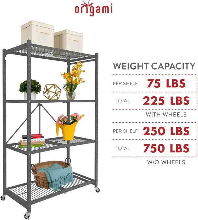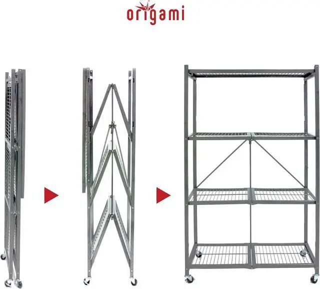 Storage: Innovative Origami foldable shelving rack made of commercial grade powder-coated steel provides a heavy duty multi-functional solution perfect for all your storage needs