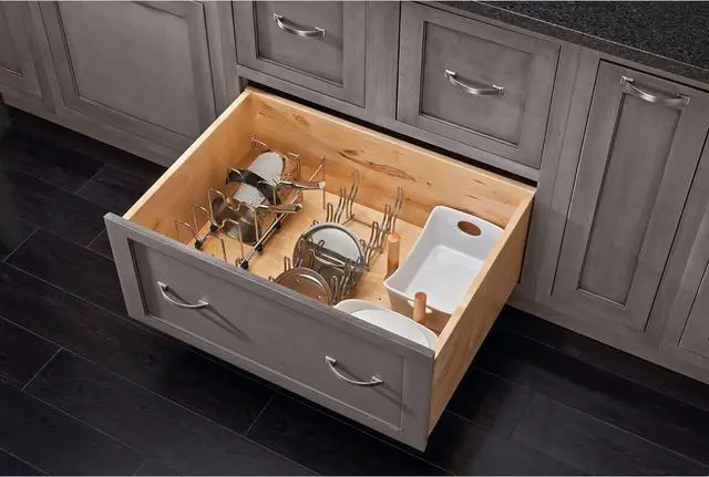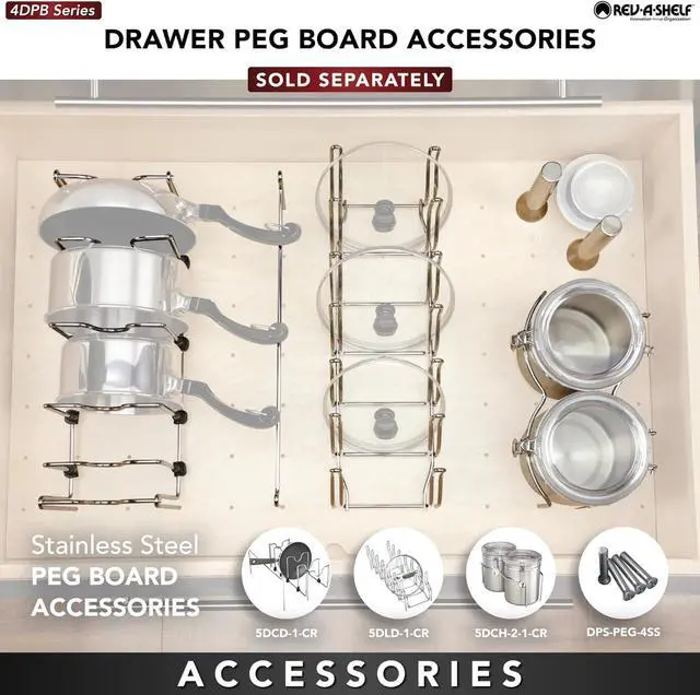 - Kitchen Drawer Divider: Ensure that you are in control of organizing your kitchen pots and pans alike in your cabinet drawers with a highly customizable pegboard system designed to fit your needs
