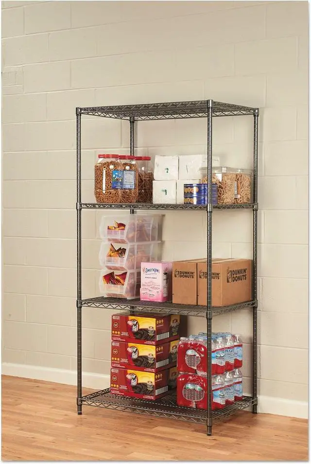 Snap-together design assembles in minutes. falseCan be set up as a four-tier single rack or as two two-tier racks to meet specific needs. falseIdeal storage solution for industrial, commercial and restaurant use. black anthracite finish is national sanitation foundation (nsf) certified for wet and dry environments. can be used in freezer applications and includes open design that allows for air circulation. snap-together design assembles in minutes. can be set up as a four-tier single rack or as two two-tier racks to meet specific needs.