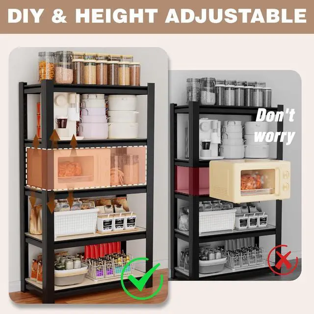 - Adjustable ShelvingEasily adjust each shelfs height to accommodate various items. This metal shelving unit adapts to your storage needs and can be divided into a 2-tier and 3-tier shelving unit.