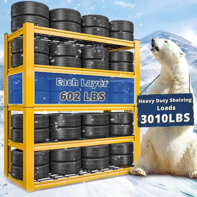 No bolts, screws or nuts are needed, read the very detailed instructions and finish assembly in top notch speed. In addition, mallet and gloves are included, help you assemblyfalse- 3010LBS Extremely SturdyThis garage shelving heavy duty has thickened legs. Every solid thickened metal shelf with extra stiffener can hold up to 602 lbs, a total of 3010 lbs bearing capacity gives you good storage experience. No matter how much weight you put on it, the garage storage shelves heavy duty will not wobble or shake