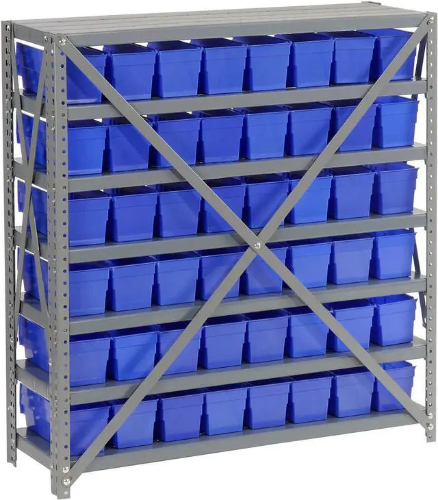 - Steel shelves have anti-sway bracing and simple assembly