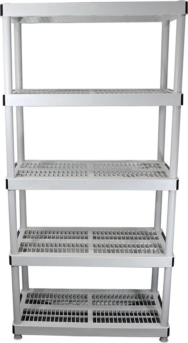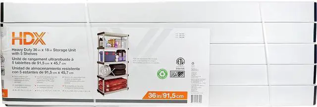 Easy assembly requiring no toolsfalseRaised feet to prevent water damagefalseThe HDX 5-tier shelving unit is 72 in. H x 36 in. W x 18 in. D. Use this multi-purpose storage organizer in your home, garage, basement or utility area to keep your space neat and manageable. HDX designed it to hold most storage tote sizes, providing you with options for every room.