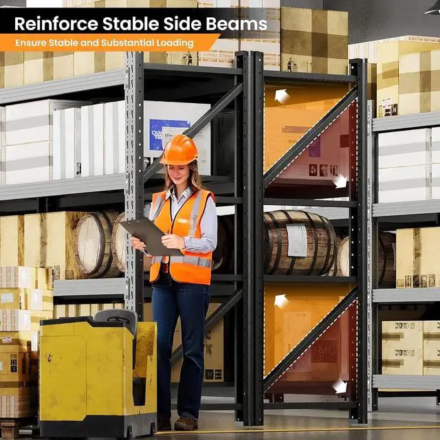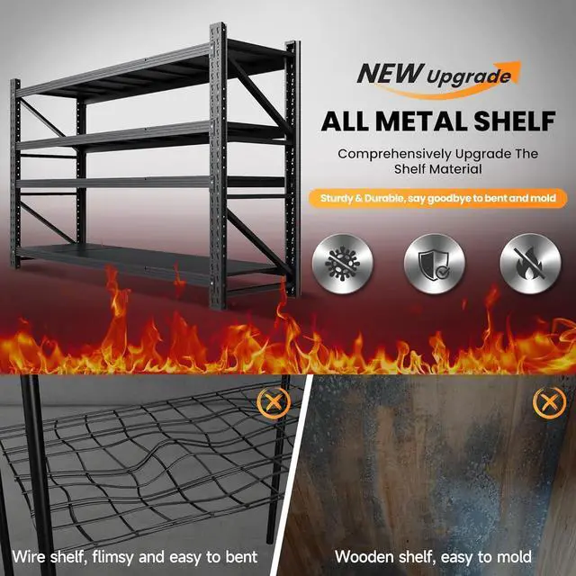 ADJUSTABLE & DETACHABLE & STABLEThe heavy duty shelving offer the flexibility to adjust shelf positions vertically. The height of each shelf can be customized based on the dimensions of stored items, accommodating objects of various sizes so that allowing you to maximize space utilization. Additionally, locking pins enhance security by preventing inadvertent disassembly and ensuring items are securely stored. We also provide protective foot pads to safeguard floors from scratches. Based on these features, the storage shelves heavy duty won't wobble no matter how much weight you put on itDURABLE & STURDYThe heavy duty storage rack is constructed from high-intensity premium cold-rolled steel and features an advanced powder coating process.