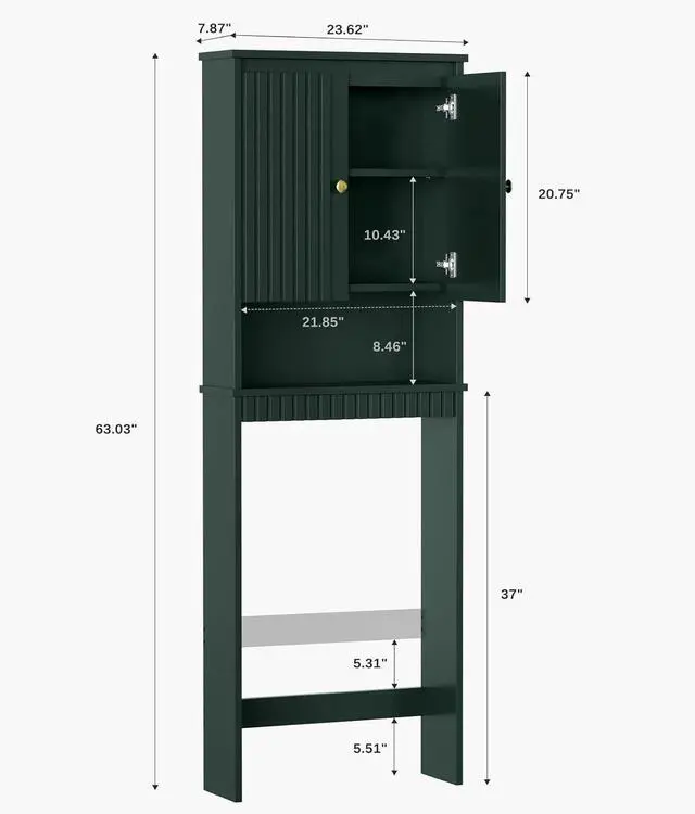 Space-Saving Dimensions: Ensure your bathroom has sufficient space for this tall over the toilet storage cabinet before purchasing; dimensions are approximately 68.11 '' H x 23.62 '' W x 7.87 '' D, ideal for maximizing vertical storage in compact areas