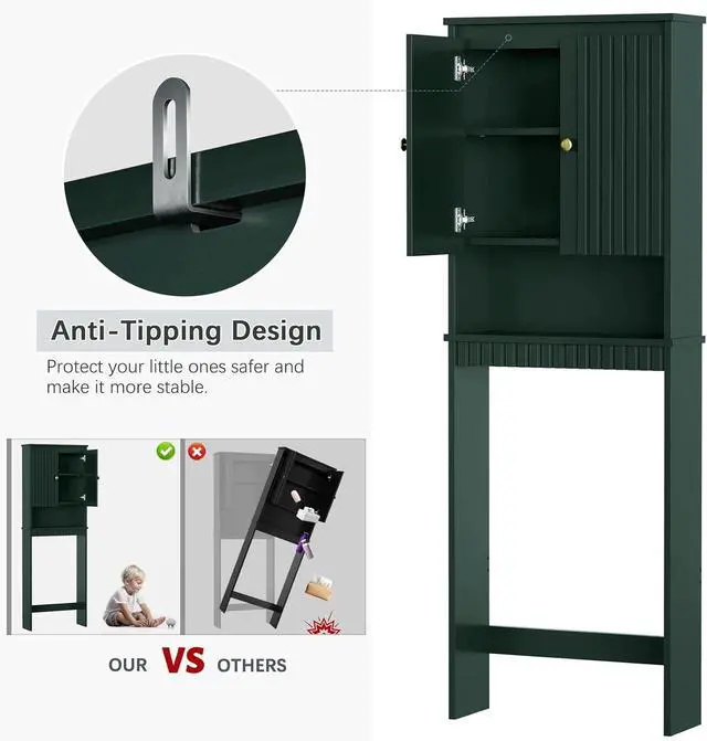 Stability: This over toilet storage cabinet includes an anti-tip device, providing extra stability and ensuring the unit remains securely anchored to the wall. This feature is especially crucial in homes with children or pets, offering peace of mind by preventing accidental tipping and enhancing overall safetyfalse-