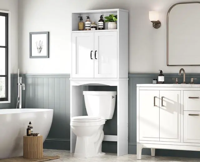 - Wide-Purpose Utility - Our versatile above the toilet cabinet offers ample storage space for a variety of items, including toiletries, towels, cosmetics, and cleaning supplies. Its adaptable design makes it suitable for use in bathrooms, laundry roo