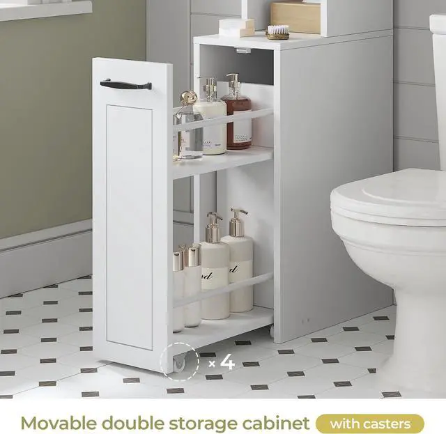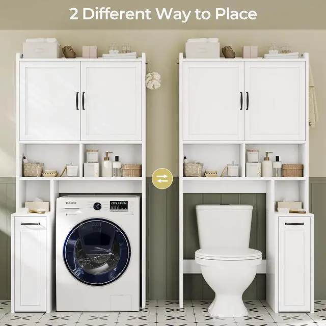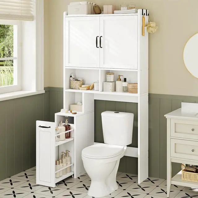 Please note that some boards have different front and back sides when installing. Then just follow the step-by-step instruction. Please feel free to contact our customer service at first, if there is any question about product, logistics and installationfalse- AMPLE STORAGE SPACE --- This cabinet above toilet comes with 1 cabinet to hide the essentials and also includes 2 open shelves in the middle. 1 paper towel holder box and bottom with casters, small bathroom storage cabinet that can slide in and out smoothly, allowing you to see what's inside at a glance and easily take what you need.