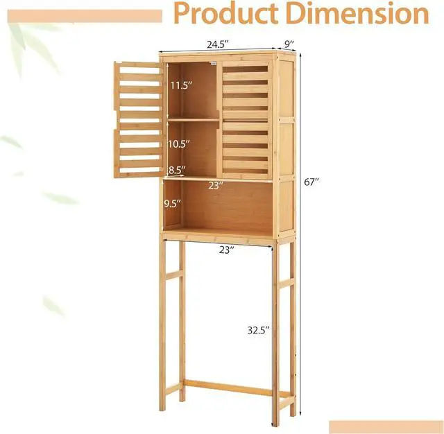 & Concealed Storage]: This tall bathroom shelf features a cabinet with 2 doors and a shelf as well as an open shelf to meet your different storage needs. It offers roomy space to store bathroom essentials, such as towels, toiletries, skincare products, aromatherapy and toilet paper.
