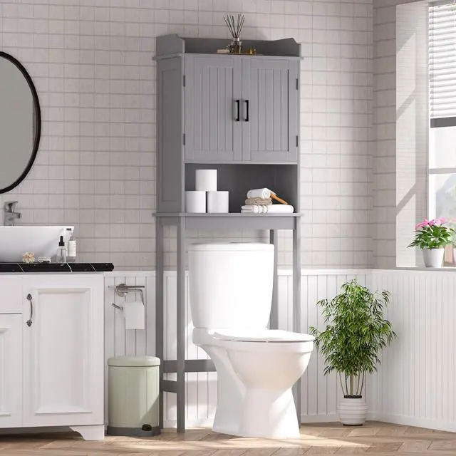 - BATHROOM CABINET OVER TOILET - The compact yet versatile design of the bathroom cabinet over toilet takes up just a small corner of your bathroom but holds most of the items you need. It is very friendly and practical for the bathroom with a compact space. The toilet is placed under the over-the-toilet cabinet, so you can have the toilet paper you need at your fingertips.