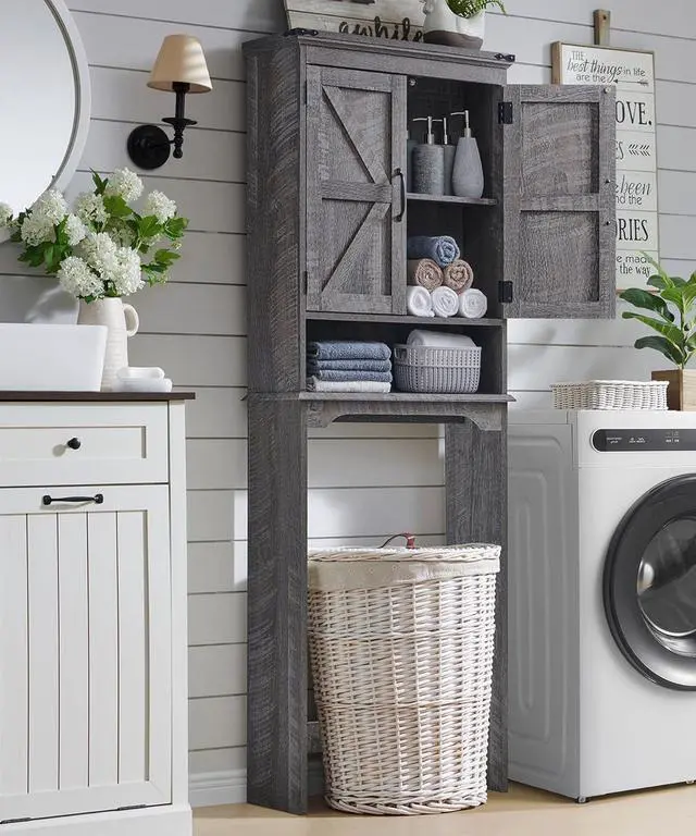 - [Adjustable Shelf]: The adjustable shelf design easily adapts to the size of your belongings. Whether it's a large item or a small accessory, you will be able to find the most suitable placement. Let your bathroom supplies are no longer a cluttered pile. L-shaped metal bracket have more enhanced support and stability, no need to worry about the shelf tilting. The Farmhouse Over-Toilet Cabinet is the embodiment of your sophisticated lifestyle.