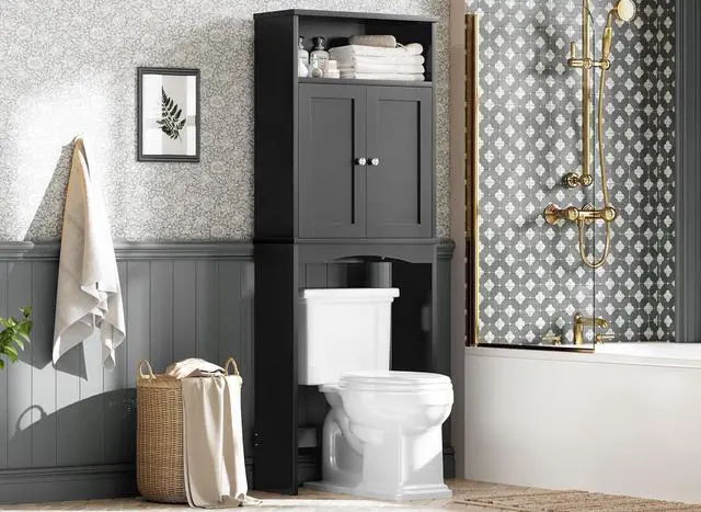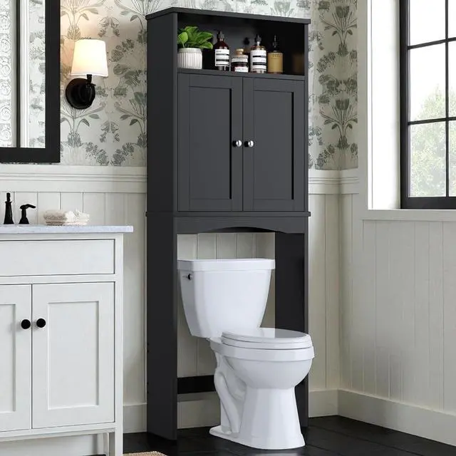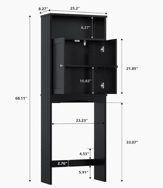Adjustable Shelf & Base Bar - Enhance your storage versatility with this adaptable over the toilet storage; the shelf can be easily moved up or down by 2 inches to meet your needs, while the customizable lower frame with an adjustable bar fits perfectly around your toilet's designfalseMulti-Functional Utility - This versatile over toilet bathroom organizer provides generous storage for a variety of items such as toiletries, towels, cosmetics, and cleaning supplies; its flexible design makes it ideal for bathrooms, laundry rooms, catering to your storage needs whether for toiletries or kitchen essentialsfalseEffortless Assembly - Our over the toilet cabinet is designed for easy setup, featuring clear instructions and labeled components; if you have questions or need help, our dedicated support team is always available for personalized assistancefalse- Optimize Bathroom Storage - This stylish over the toilet storage cabinet makes the most of vertical space above your toilet, effectively doubling your storage while enhancing any décor; with dimensions of 25" x 8" x 68", it keeps your daily essentials close at hand, transforming usually wasted wall space into an organized, visually appealing area