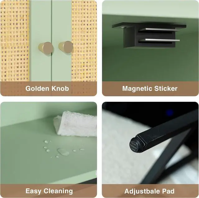 - Great Appearance: The Toilet storage cabinet is designed with natural cabinet standing on black metal rack. The Wood grain board and rattan double doors brings a chic natural style to your bathroom. The rattan double doors make and will sure be a particular piece to your home decor