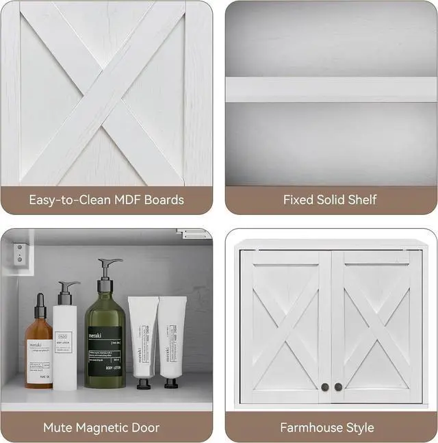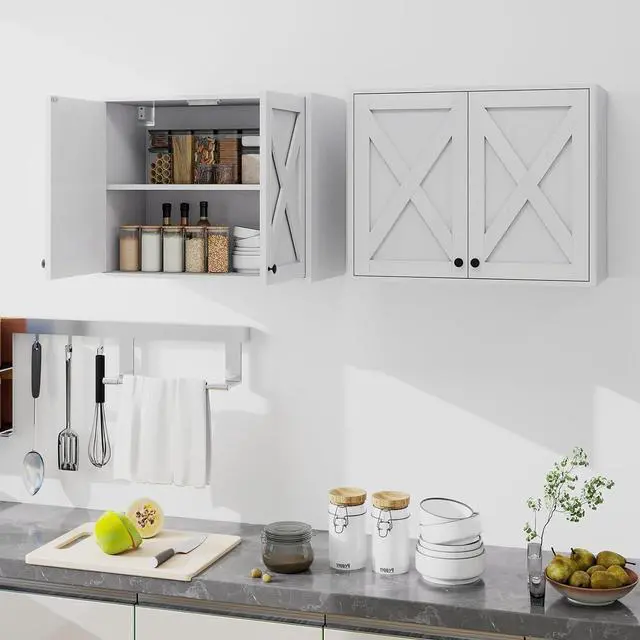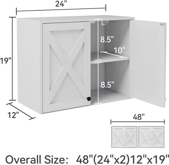 Multi-scenario Use: Measuring one set of two pieces this farmhouse bathroom wall cabinet is 24"W x 12"D x 19"H, modern chic make them perfect for various rooms, it is not limited to the bathroom cabinet, It can be hung over the kitchen countertop to store kitchenware, as a laundry cabinet, a medicine cabinet, a bathroom cabinet over the toilet, a hallway cabinet, etc. Upgrade your home decor with our rustic stylish