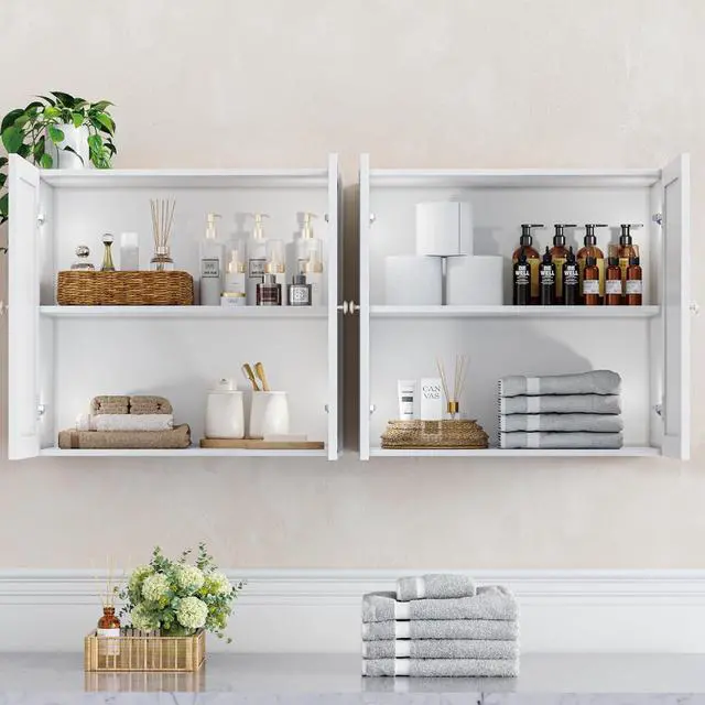 - [Stylish and Multi-Purpose]Upgrade your home decor with our stylish white wall cabinets. The clean lines and minimalist design make them perfect for any room, from the kitchen to laundry room or bathroom