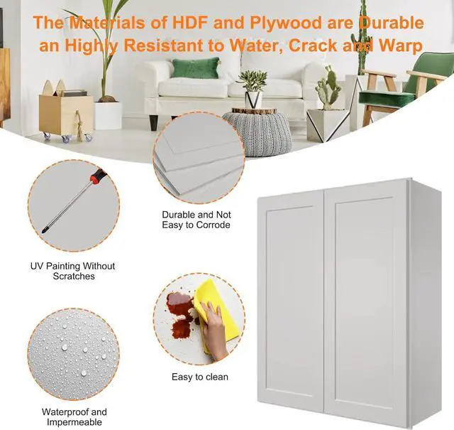 - Effortless Maintenance: The cabinets' smooth and glossy paint finish simplifies cleaning with just a damp cloth, maintaining their color and finish even after extended use, ensuring long-term aesthetic appeal.