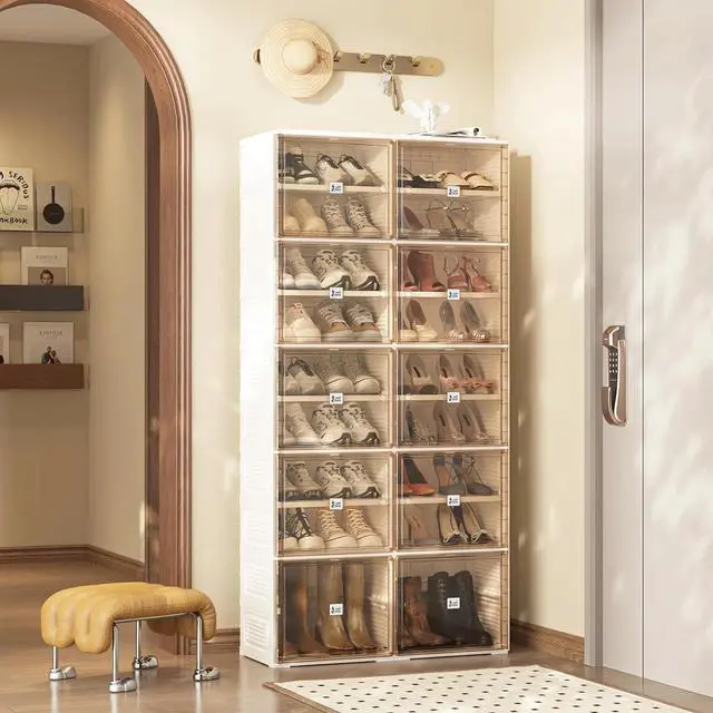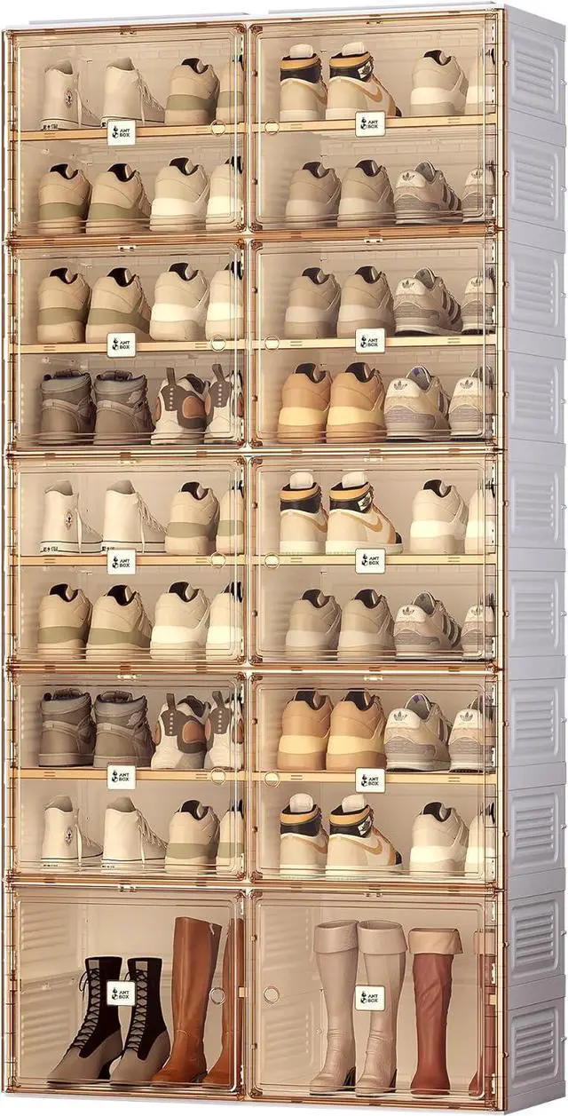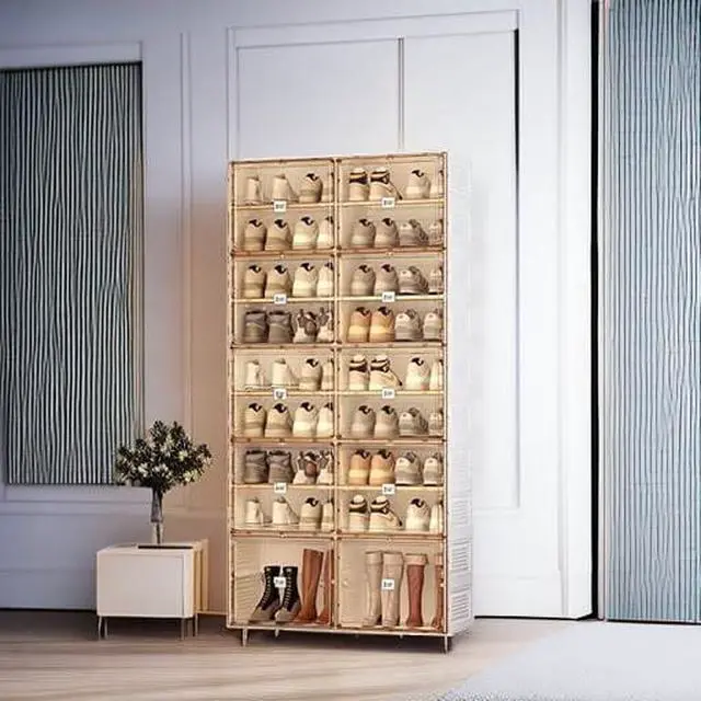• 3-Minute Quick Installation Designthe folding storage box is one-pieceproviding you with quick installation and fast folding. easier to use, store and carry.falseFree CombinationIt can be assembled into a shoe storage cabinetor it can be used as a sneaker rack to form a wall.You can choose show boxes of multiple sizes to combine.falseMaterial : PP+PET,Shoe rack has no irritating odor green environmental protection.The thickened folding support frame has strong bearing capacity.false