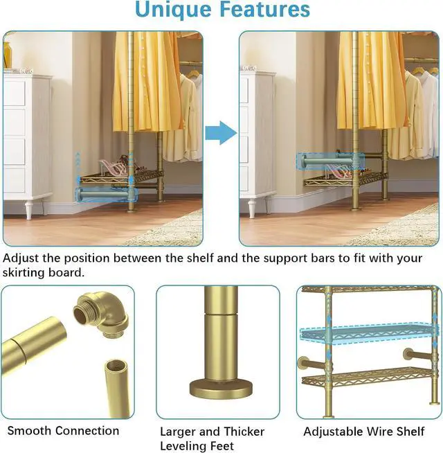 - Sturdy and Reliable -- Our metal clothing rack for hanging clothes is made of high quality matte powder coated metal poles, racks and hanger. And therefore it's scratch-resistant, the strong metal pipe seamless sleeve is extremely reliable and wall-mounted closet can avoid sagging or wobbing. Max Load 950lbs.