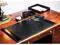 - CONTENTS: This leather desk organizer set includes a 30" x 18" side-rail desk pad, a front-load letter-size tray, a pencil cup, a 4" x 6" memo holder, a business card holder and a letter opener.