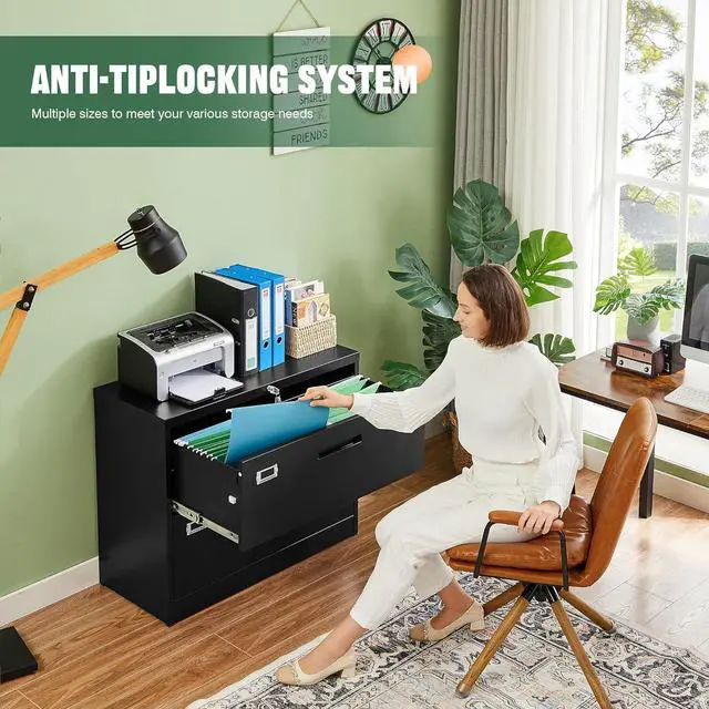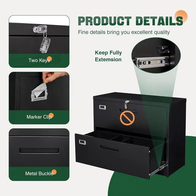 All-steel Stable-Rustproof: Lateral file cabinet is made of thick high-strength cold-rolled solid all-steel material. Rugged and not easily deformed, powder-coated construction making it immune to corrosion and rust. It is ideal for long-term use
