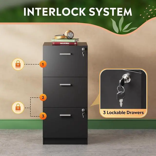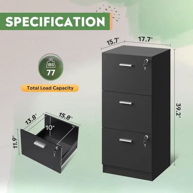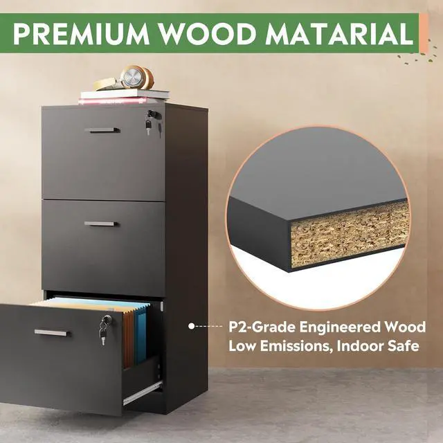 Premium Wood ConstructionCrafted from durable, high-quality wood, this file cabinet can hold up to 77 pounds, ensuring stability and durability for a reliable storage solution that lasts. falseLocking Secure StorageWith a single lock on the top drawer and a double interlocking structure on the bottom, this file cabinet ensures secure locking for all drawers, ideal for storing important documents and personal items, safeguarding your privacy and security. false- Engineered Wood