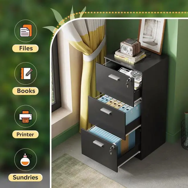 - Modern & FunctionalityThe DEVAISE 3-drawer wood file cabinet features a sophisticated wood finish and streamlined design, adding a touch of class to your home office. Its spacious storage keeps your files organized without occupying much floor space.