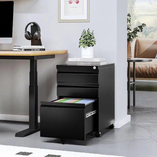 - LOCK AND ANTI-TILT DESIGN FOR HIGHT SECURITY: The sturdy file cabinet comes with 2 keys to lock up the top and bottom drawers. And the small wheel in the front that keeps the cabinet from tipping. The rear casters can be moved around and locked. Easy to move around and enough space for your files and keep important Files. Home files fit well in this stable and movable 3-drawer file.