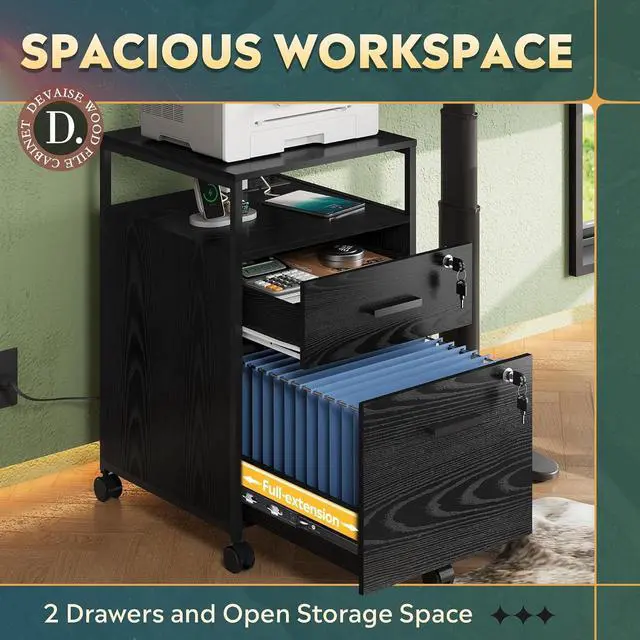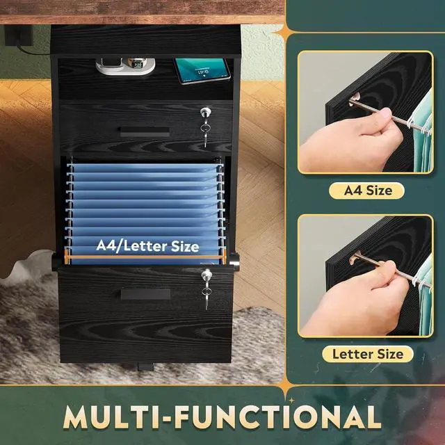 Chargeable File Cabinet: This filing cabinet is equipped with AC power outlet and USB port, you can fix it next to or under desk, which ensure that you can charge cell phone, printer and other devices while you are working, and also enhance the convenience in home office.