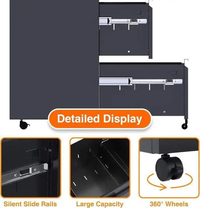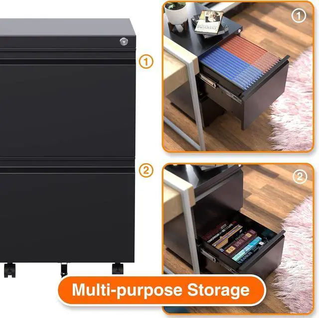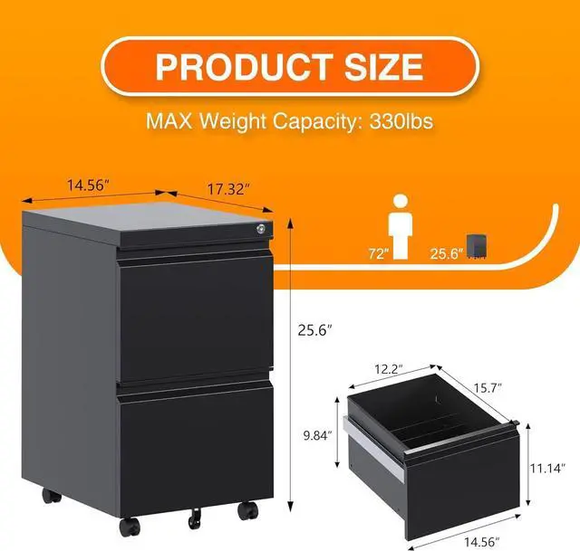 ADD MORE MOBILITYThis 2 drawer file cabinet arrives with five casters, including two front casters with braking function and one center caster to prevent tippingfalseSTYLISH & PRACTICALFeaturing simple stylish appearance, this 2 drawer metal files cabinet with lock fits under most desks, keep your workspace tidy and cleanfalse- FULLY ASSEMBLED EXCEPT WHEELSFile cabinet deliver is fully assembled except the casters.