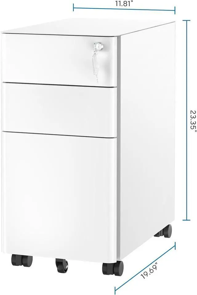 Space-Saving Design: The sleek, contemporary style enhances the aesthetic of any corporate or home office while offering a compact solution for tight spaces. Measuring just 11.81" wide, this slim file cabinet is perfect for fitting under desks or in narrow corners, making it an ideal choice for anyone looking to maximize their workspace without sacrificing storage capacity or style.