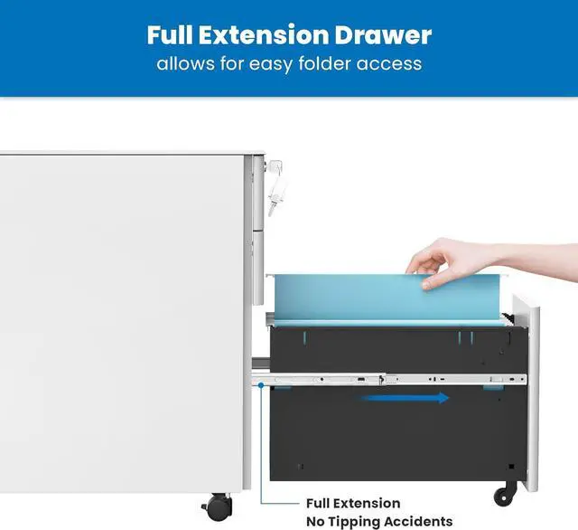 - Mobile Convenience: Featuring four 360° swivel casters, this file cabinet can be easily moved around your office for maximum flexibility. The two front casters can be locked in place to keep the cabinet stable, while an additional anti-tipping wheel at the front prevents accidental tipping when drawers are opened. Whether you need to reposition it for cleaning or relocate it to another room, this file cabinet is designed to provide mobility without compromising on stabilit