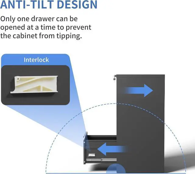 - Anti-tilt DesignThis vertical legal file cabinet designed with full extension and steel ball-bearing suspension, all drawers of the file cabinets can be opened and closed quietly and easily. The anti-tilt system ensures that only one drawer can be open at a time, preventing the metal file cabinet from tipping over. You can have peace of mind knowing that your important documents and items are safe and secure.